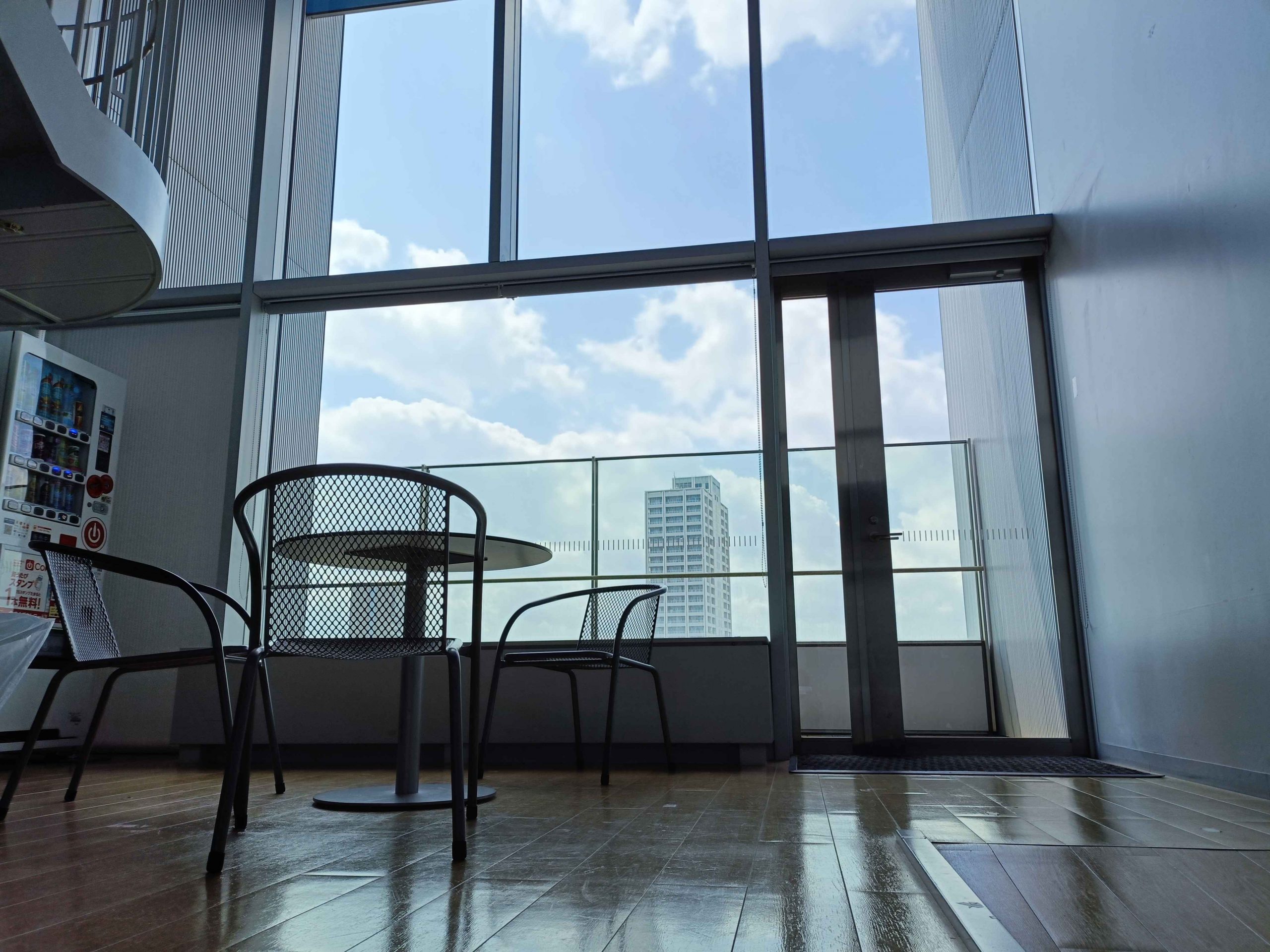 4/15 1号館10階 アゴラ 2026年4月15日、ロボメカ生のための研究室があるTDU1号館10階を紹介します。このフロアにはアゴラというスペースがあります。「アゴラ」とは、古代ギリシャ語で公共広場のことだそうです。その言葉の通り、ロボメカ生に開かれた休憩スペースですね!筆者もたまに赴いては隅にある自販機でエナジードリンク的なsomethingを買って、ひと息ついています。
