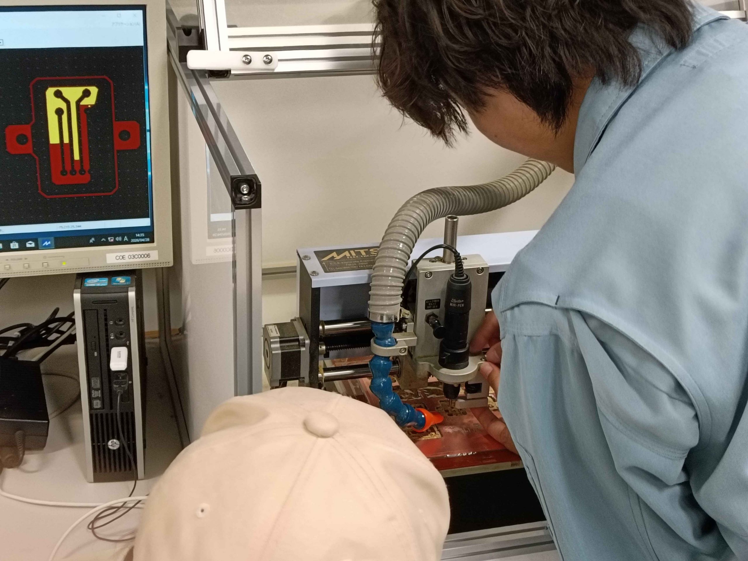 4/28 総合実験(Bテーマ) 2026年4月28日、今日は総合実験Bテーマです。基礎実験と同様に2テーマを午前と午後に分けて、これらを1年間で実践・学習していきます。Bテーマのほんの一部ですが、回路基盤の設計製作を取材しました。下の写真は、センサ回路の製作と完成したセンサの様子です。 –>