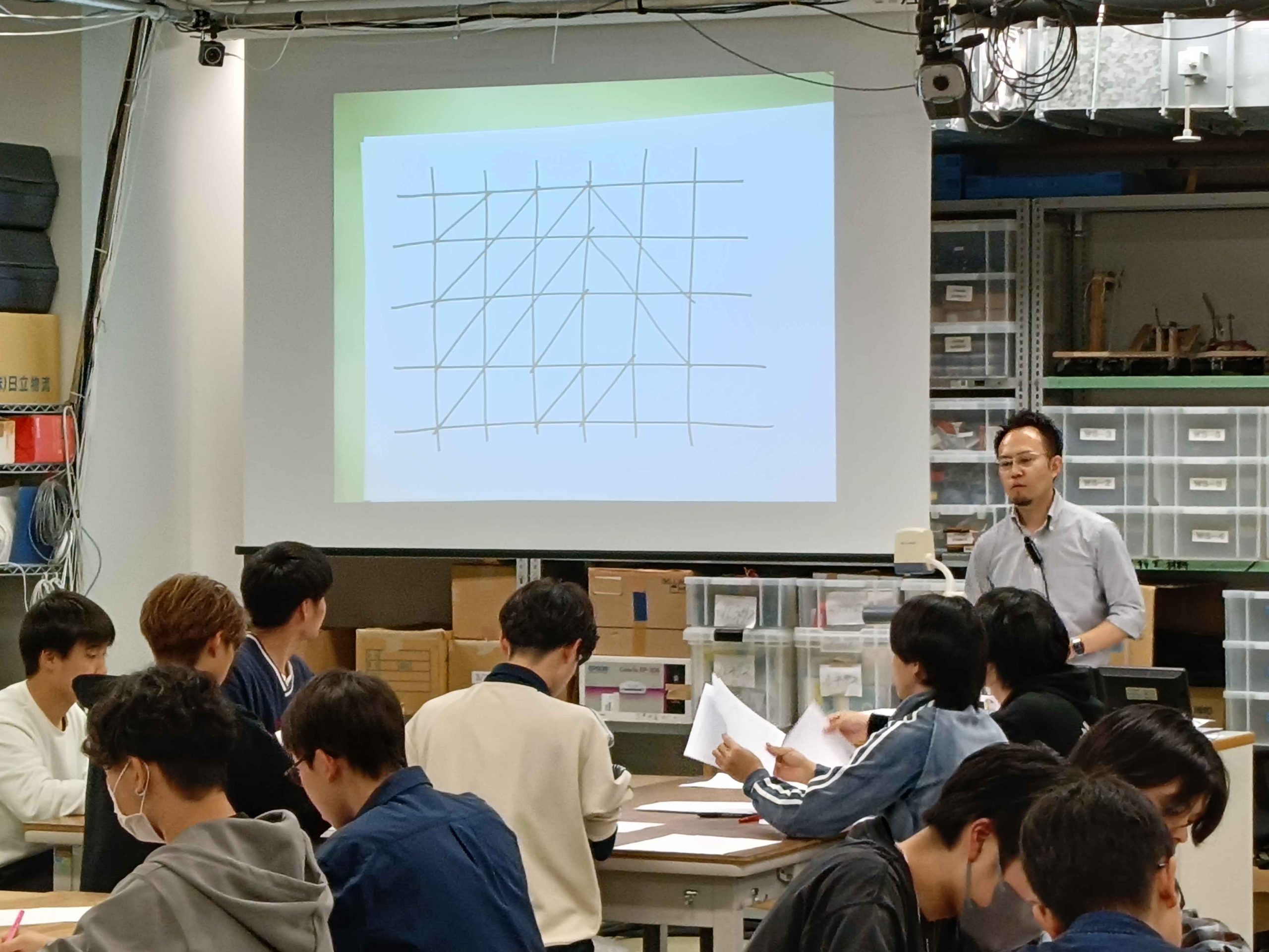 4/29 ドローイング回 (基礎ゼミ1) 2026年4月29日、今日は基礎ゼミ1のドローイングの授業を取材しました。前回インストール大会で取材した科目です。今回は、工学的にモノをデザインするための書き方の基本を学習し、習得しました。慣れれば右下のように向きの自在に扱うことができます。 –>