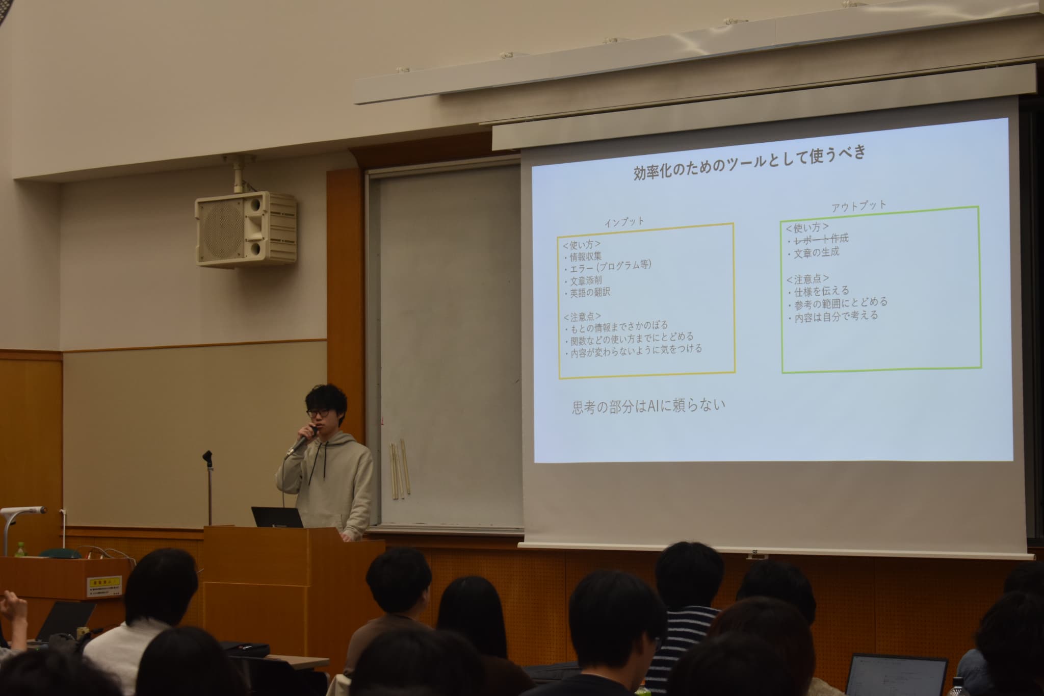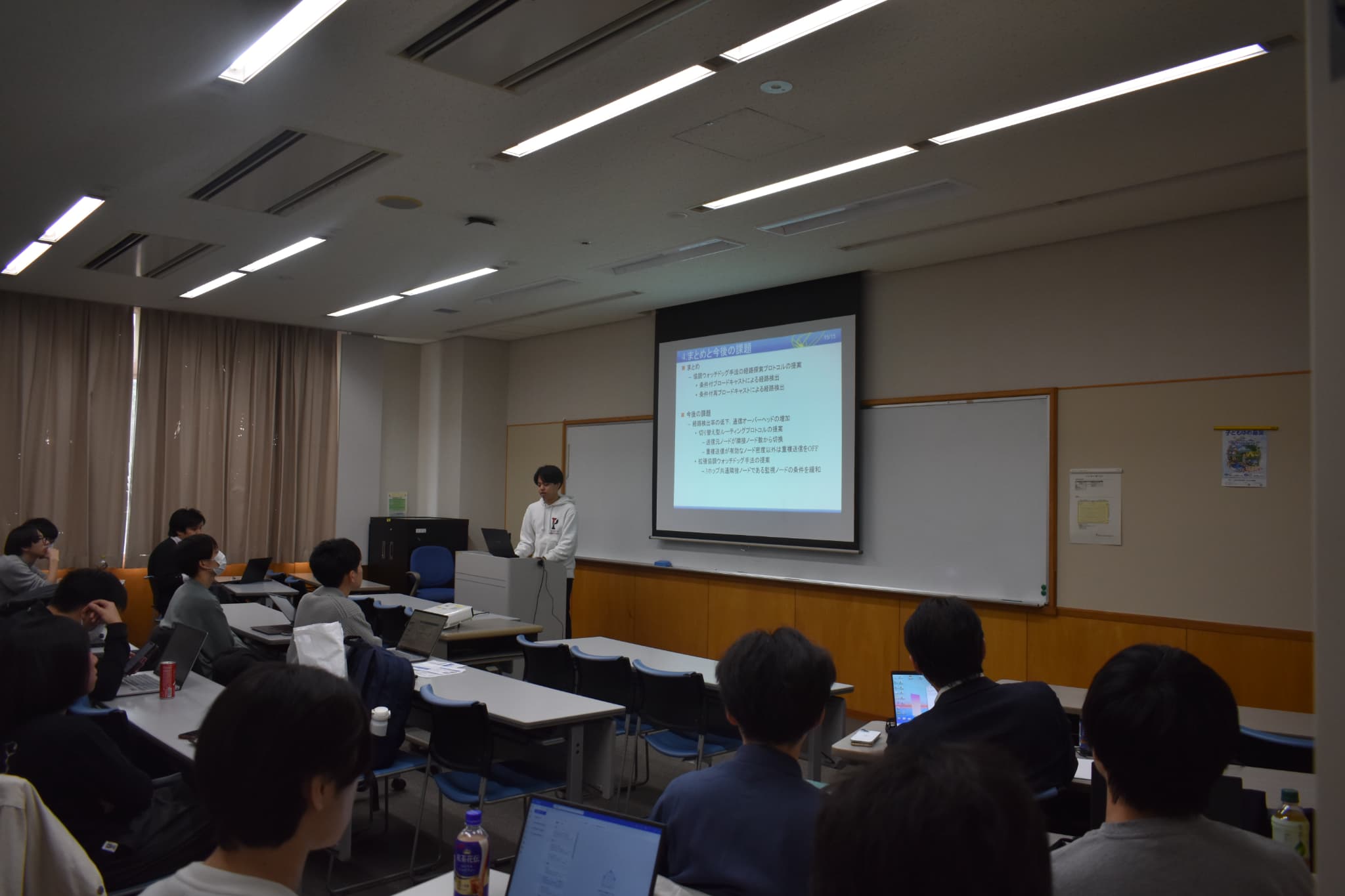 大学院宿泊研修 2月24日(火)、25日(水)の2日間、国立オリンピック記念青少年総合センターにて大学院研修を実施しました。M1の学生と大学院進学予定の学部4年生が参加し、初日はM1学生による副査へのプレゼンテーション、午後はグループワークと学生交流を行いました。2日目にはグループディスカッションと発表を実施し、学年を越えた交流を深めるとともに、今後の研究活動や大学院生活について考える機会となりました。